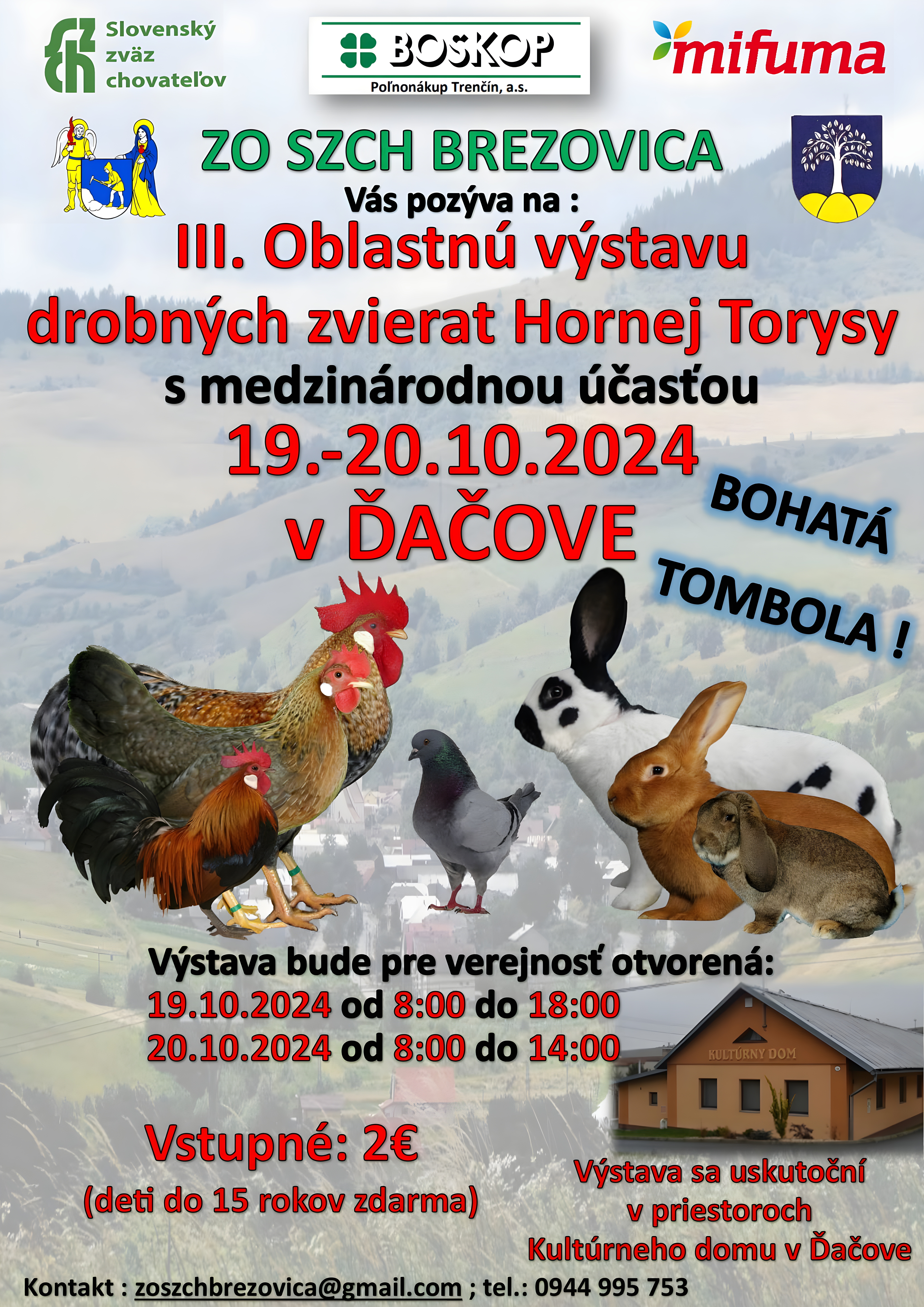 III. Oblastná výstava drobných zvierat hornej torysy Brezovica 19. - 20. 10. 2024